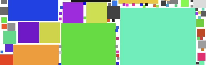 Mit einem einzigen Klick entsteht jedes Mal ein völlig neues, farbintensives Quadratbild. Das Prinzip dahinter ist einfach: Ein kleines PHP-Programm erzeugt eine 800×800 Pixel große Fläche und füllt sie mit Quadraten in unterschiedlichsten Größen – von winzigen 10-Pixel-Kacheln bis hin zu großflächigen 300-Pixel-Blöcken. Die Farbauswahl reicht von kräftigen, leuchtenden Tönen bis zu Schwarz, Grau und Weiß.