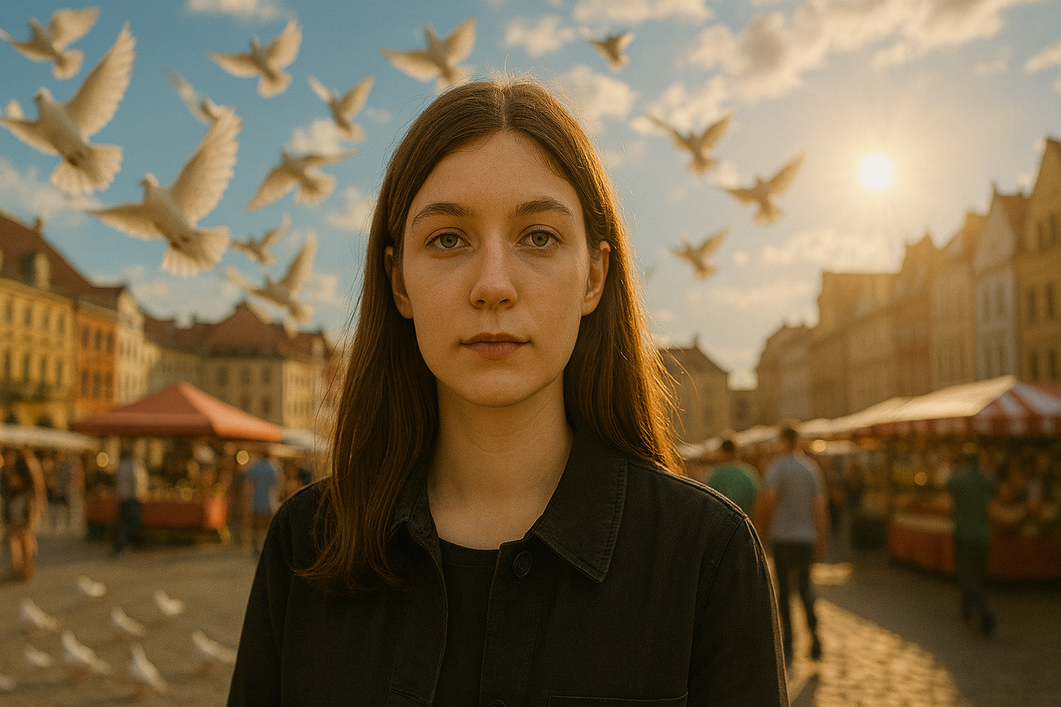 So entsteht also aus einem schlichten Studiofoto eine ganze Reise durch Stadt, Natur und Emotionen – alles durch die Macht der Sprache.